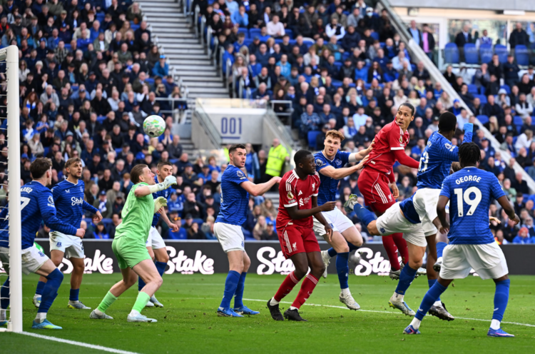 Khi tran dau chuan bi sang phut bu cuoi, tu qua phat goc ben canh trai, Dominik Szoboszlai treo bong vao giua vong cam. Van Dijk, du bi trung ve James Tarkowski theo sat va tham chi keo ao, van co the bat nhay danh dau tung luoi thu thanh Jordan Pickford, nang ty so len 2-1 cho doi khach.