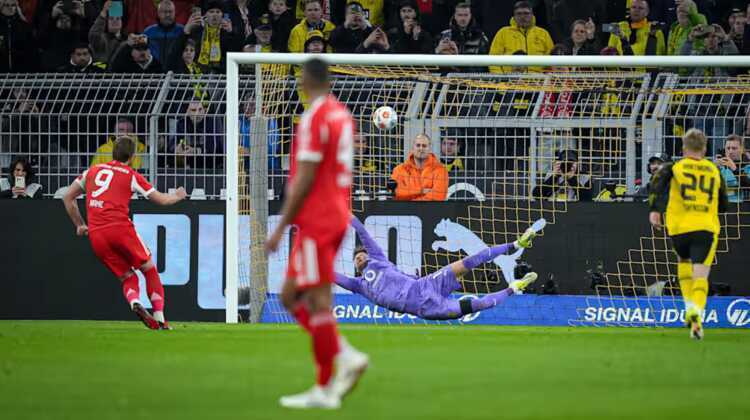 Phút 70, Schlotterbeck phạm lỗi với Josip Stanisic trong vòng cấm, giúp Bayern hưởng phạt đền. Kane không bỏ lỡ cơ hội với cú đá căng về góc trái, nâng chuỗi sút 11 mét thành công tại Bundesliga lên con số 24 liên tiếp. Đây cũng là quả penalty thứ 10 anh ghi bàn mùa này, cân bằng kỷ lục tồn tại từ mùa 1980-1981 do Paul Breitner thiết lập.