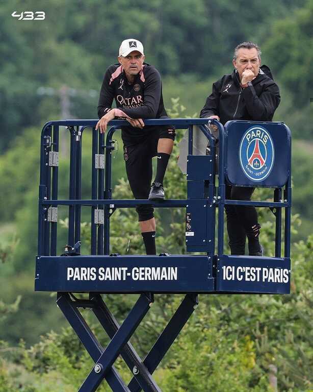 Thoi o Barca, ong thuyet phuc ban lanh dao dung mot gian giao tren san tap de quan sat tot hon tu tren cao cach di chuyen cua cau thu. Y tuong nay duoc Enrique hoc hoi tu HLV huyen thoai Italy Arrigo Sacchi va duoc ong mang theo den Paris, qua nhung lan gan day ong xuat hien o hang ghe khan dai cua SVD de quan sat va chi dao tu xa.