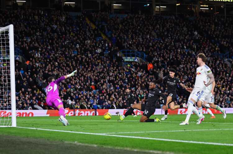 Leeds đạt thống kê bàn thắng kỳ vọng (xG) lên tới 1,24 - mức cao nhất mà Man City phải nhận trong 45 phút đầu một trận tại Ngoại hạng Anh mùa này. Tuy nhiên, Dominic Calvert-Lewin và Brenden Aaronson lần lượt bỏ lỡ các tình huống ngon ăn, trong đó Calvert-Lewin đánh đầu chệch cột ở phút thứ ba sau đường tạt thuận lợi của Aaronson.
